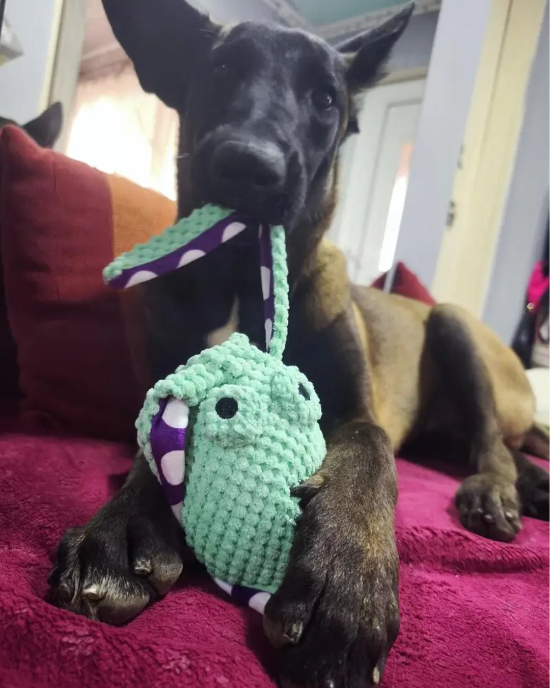 Faktura materiału umożliwia psu inteligentną „pracę” dla pyska i głowy, więc nuda znika.