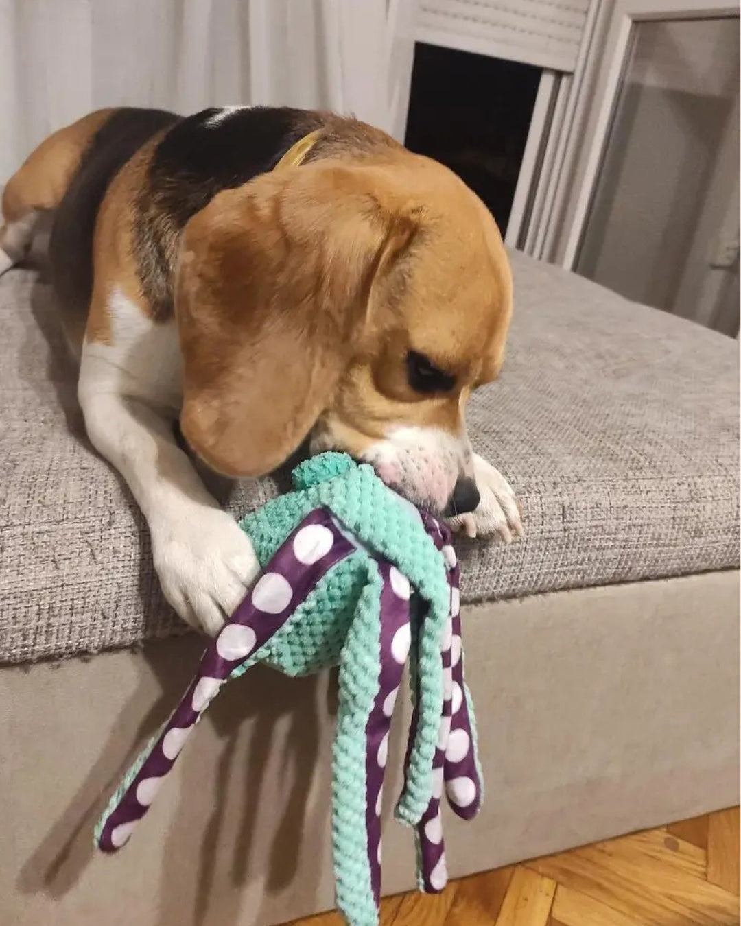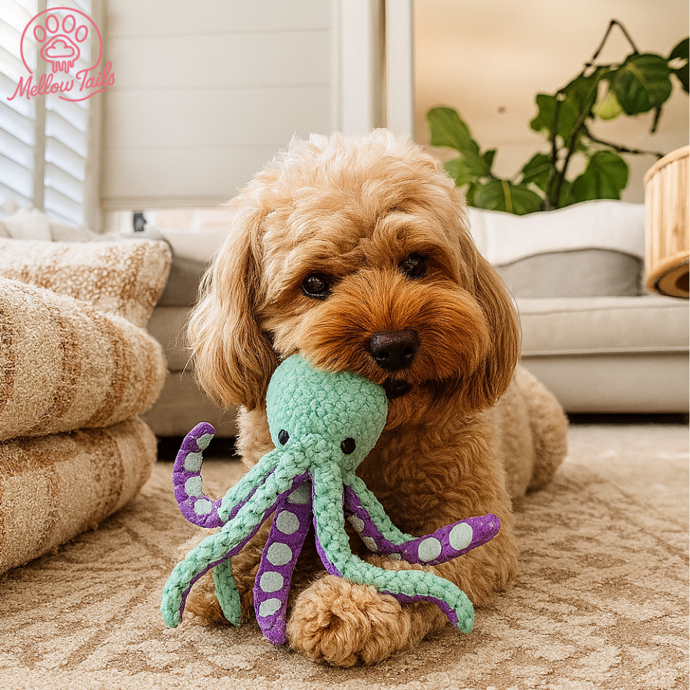 Macki ośmiornicy sprawiają, że pies jest zainteresowany zabawką, Dzięki temu chętnie ją szarpie i zostawiając w spokoju twoje buty.