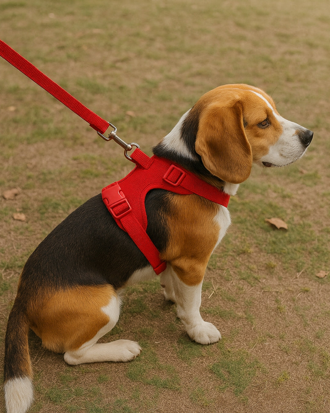 Zaprojektowaliśmy zestaw dla szerokiego zakresu ras — od małych po większe, o standardowej budowie. Kluczowy jest obwód klatki piersiowej mierzony w najszerszym miejscu. Jeśli jesteś między rozmiarami, wybierz większy i dociągnij taśmy; zostaw ok. 2 cm luzu. Przy nietypowej budowie (bardzo głęboka klatka, wyjątkowo krótka szyja) poświęć chwilę na testowy spacer i ewentualne mikrokorekty.
